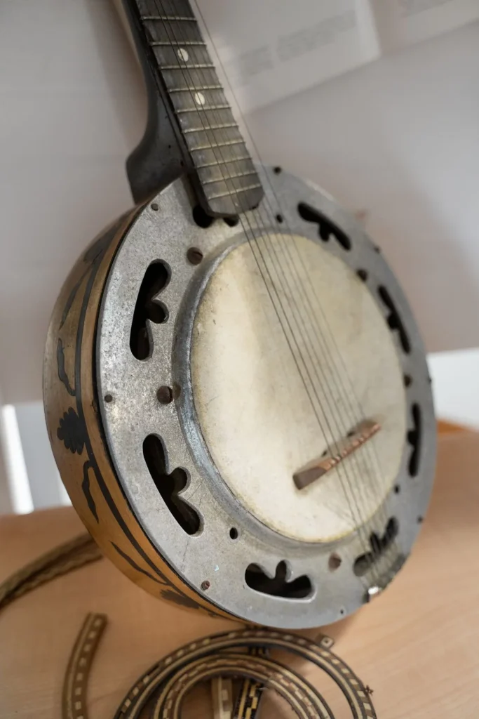 Questo Banjo è stato realizzato dalla Premiata Liuteria catanese di Vincenzo Miroglio e Figli che lavorava a pieno regime tra gli anni ’20 e ’60.