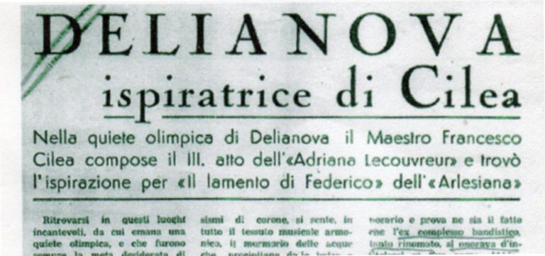 Inizia il “feeling” tra Delianuova e il grande maestro palmese Francesco Cilea Questo feeling, che avrebbe portato più tardi lo stesso complesso bandistico ad onorare il maestro assumendo il suo nome, inizia quando, per l’amicizia e la parentela che lo legava al poeta Felice Soffrè, egli, spesso, specie nel periodo estivo, veniva a Delianuova a “godere di un’aria più salubre”. Saverio Scutellà – e l’opinione pubblica deliese – afferma addirittura che: “nella quiete Olimpica di Delianuova il nostro F. Cilea compose il III° atto dell’Adriana (Lecouvreur) e trovò l’ispirazione per il lamento di Federico nell’Arlesiana”.